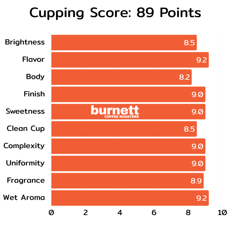 Cupping Score — 89 Points (High-quality, expressive cup with vibrant acidity and layered flavors)