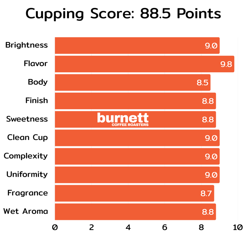 Cupping Score — 88.5 Points (Sweet, bright, and well-balanced cup with syrupy clarity and lively citrus)