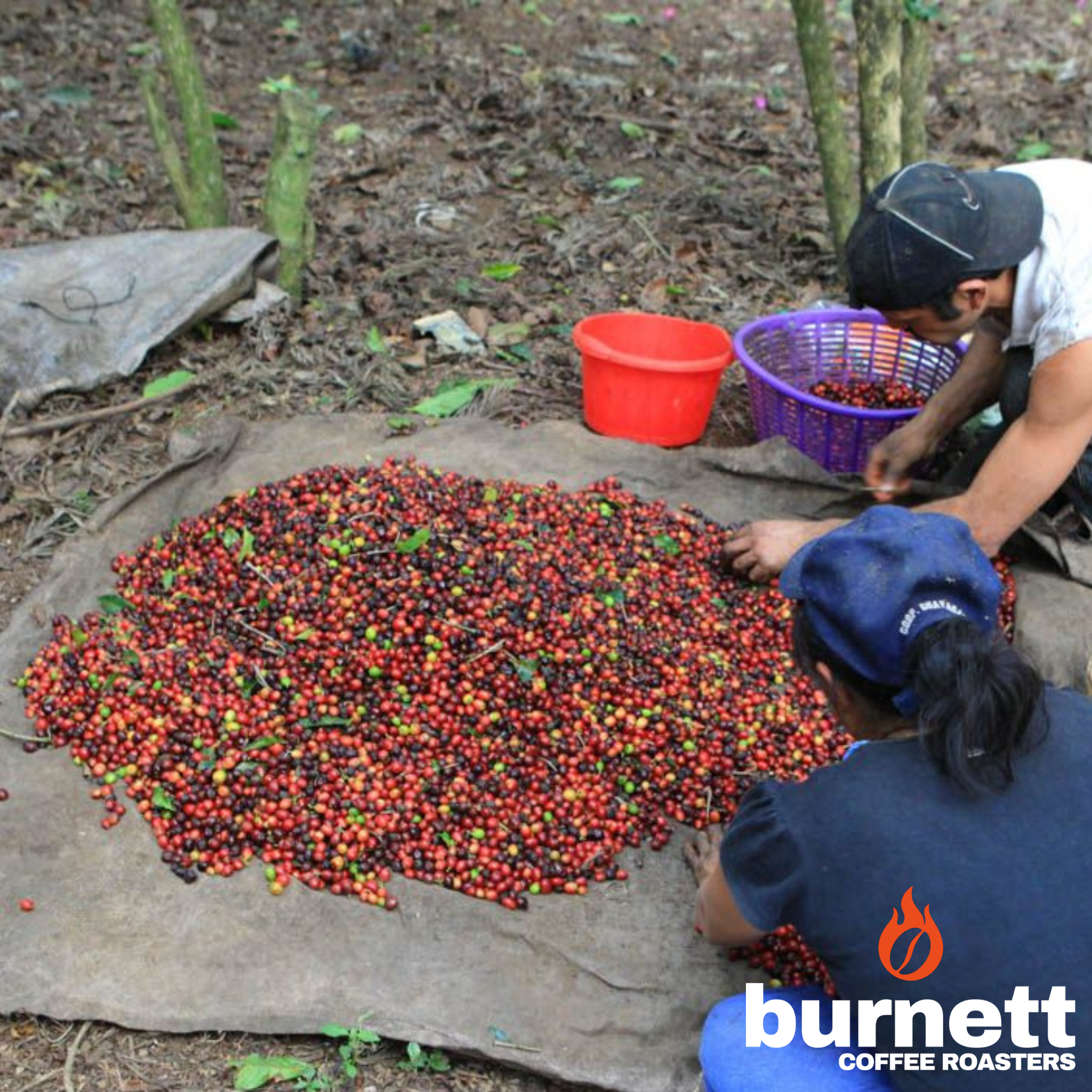This coffee is sourced from smallholder members of FECCEG, a cooperative in Western Guatemala working with indigenous Mayan groups in Quiché. Farmers cultivate coffee along the Chuacús mountain range (1,600–1,700 m) and focus on organic production while supporting community programs for education, gender equity, and food security. The cooperative’s centralized wet mill in Joyabaj ensures strict quality control.